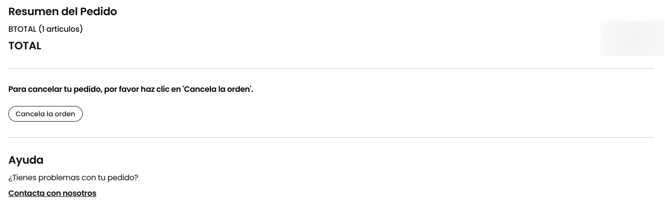 En la siguiente página, desplázate hacia abajo y encontrarás el botón "Cancelar Pedido":